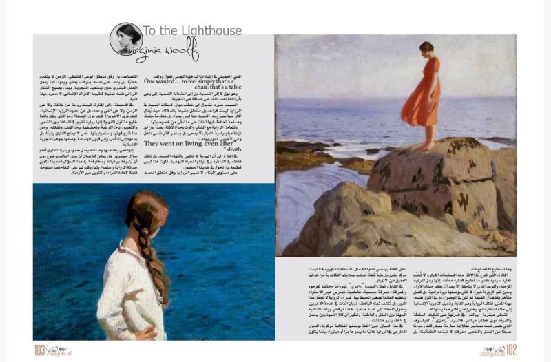 إلى المنارة" To the Lighthouse للكاتبة "فرجينيا وولف" رائدة الحداثة هى رواية تأملية رقيقة تتناول العلاقات الإنسانية، ومرور الزمن، والبحث عن المعنى في الحياة. تبدأ الرواية في البيت الصيفي لعائلة "رامزي" قرب البحر. تتمحور الأحداث حول السيدة "رامزي"، المرأة الحنون العطوف، وزوجها السيد "رامزي"، المفكّر الجاد، وأطفالهما الثمانية. تتكرر فكرة الذهاب إلى المنارة طوال الرواية، لتغدو المنارة رمزًا للأحلام والآمال التي قد لا تتحقق أبدًا.