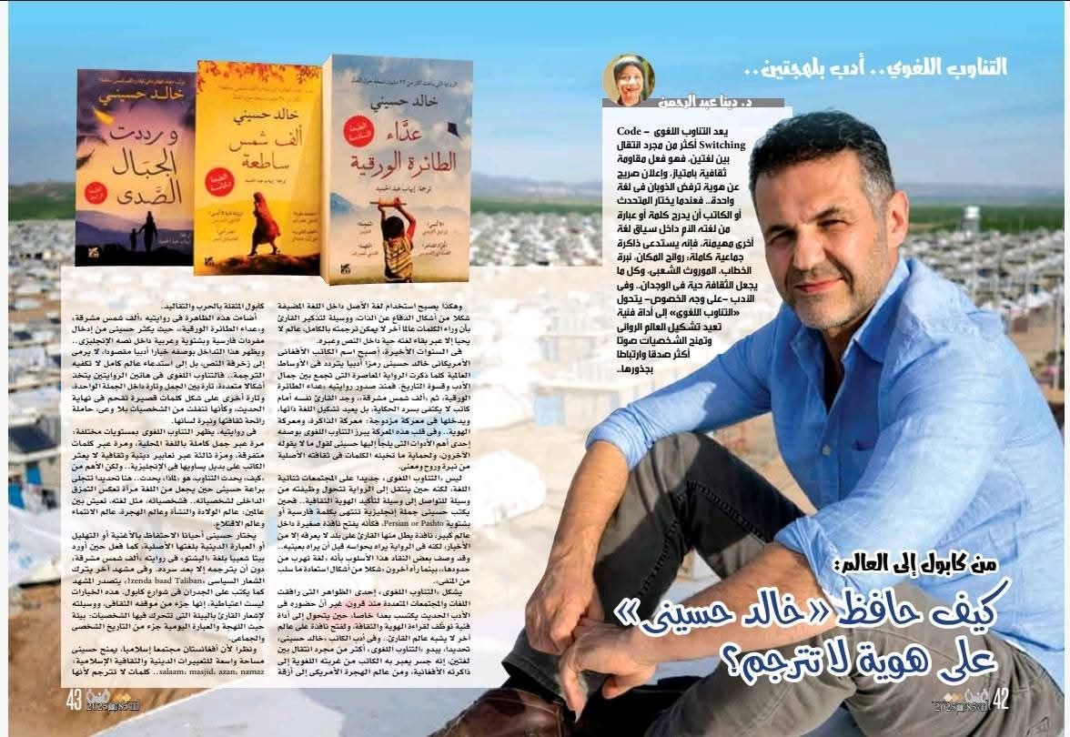 يُعد التناوب اللغوي Code-Switching أكثر من مجرد انتقال بين لغتين؛ فهو فعل مقاومة ثقافية بامتياز، وإعلان صريح عن هوية ترفض الذوبان في لغة واحدة. فعندما يختار المُتحدث أو الكاتب أن يُدرج كلمة أو عبارة من لغته الأم داخل سياق لغة أخرى مُهيمنة، فإنه يستدعي ذاكرة جماعية كاملة: روائح المكان، نبرة الخطاب، الموروث الشعبي، وكل ما يجعل الثقافة حيّة في الوجدان. وفي الأدب -على وجه الخصوص-، يتحول "التناوب اللغوي" إلى أداة فنية تعيد تشكيل العالم الروائي وتمنح الشخصيات صوتاً أكثر صدقاً وارتباطاً بجذورها. وهكذا يصبح استخدام لغة الأصل داخل اللغة المضيفة شكلاً من أشكال الدفاع عن الذات، ووسيلة لتذكير القارئ بأن وراء الكلمات عالماً آخر لا يمكن ترجمته بالكامل، عالمٌ لا يحيا إلا عبر بقاء لغته حيّة داخل النص وعبره. في السنوات الأخيرة، أصبح اسم الكاتب الأفغانى الأمريكانى خالد حسيني رمزاً أدبياً يتردّد في الأوساط العالمية كلما ذُكرت الرواية المعاصرة التي تجمع بين جمال الأدب وقسوة التاريخ. فمنذ صدورروايتيه “عدّاء الطائرة الورقية” ثم “ألف شمس مشرقة”، وجد القارئ نفسه أمام كاتب لا يكتفي بسرد الحكاية، بل يُعيد تشكيل اللغة ذاتها، ويُدخلها في معركة مزدوجة: معركة الذاكرة، ومعركة الهوية. وفي قلب هذه المعركة يبرز التناوب اللغوي بوصفه إحدى أهم الأدوات التي يلجأ إليها حسيني لقول ما لا يقوله الآخرون، ولحماية ما تخبّئه الكلمات في ثقافته الأصلية من نبرة وروح ومعنى. ليس "التناوب اللغوي" جديداً على المجتمعات ثنائية اللغة، لكنه حين ينتقل إلى الرواية تتحوّل وظيفته من وسيلة للتواصل إلى وسيلة لتأكيد الهوية الثقافية. فحين يكتب حسيني جملة إنجليزية تنتهي بكلمة فارسية أو بشتوية Persian or Pashto ، فكأنه يفتح نافذة صغيرة داخل عالم كبير، نافذة يطلّ منها القارئ على بلد لا يعرفه إلا من الأخبار، لكنه في الرواية يراه بحواسه قبل أن يراه بعينيه. وقد وصف بعض النقاد هذا الأسلوب بأنه “لغة تهرب من حدودها”، بينما رآه آخرون “شكلاً من أشكال استعادة ما سُلب من المنفى.” يشكّل "التناوب اللغوي" إحدى الظواهر التي رافقت اللغات والمجتمعات المتعددة منذ قرون، غير أنّ حضوره في الأدب الحديث يكتسب بُعداً خاصاً، حين يتحوّل إلى أداة فنية توظَّف لقراءة الهوية والثقافة، ولفتح نافذة على عالم آخر لا يشبه عالم القارئ. وفي أدب الكاتب "خالد حسيني" تحديداً، يبدو "التناوب اللغوي" أكثر من مجرد انتقال بين لغتين؛ إنه جسر يعبر به الكاتب من غربته اللغوية إلى ذاكرته الأفغانية، ومن عالم الهجرة الأمريكي إلى أزقة كابول المثقلة بالحرب والتقاليد. أضاءت هذه الظاهرة في روايتيه" ألف شمس مشرقة" و"عدّاء الطائرة الورقية"، حيث يُكثر حسيني من إدخال مفردات فارسية وبشتوية وعربية داخل نصه الإنجليزي. ويَظهر هذا التداخل بوصفه خياراً أدبياً مقصوداً، لا يرمي إلى زخرفة النص، بل إلى استدعاء عالم كامل لا تكفيه الترجمة. فالتناوب اللغوي في هاتين الروايتين يتخذ أشكالاً متعددة، تارة بين الجمل وتارة داخل الجملة الواحدة، وتارة أخرى على شكل كلمات قصيرة تُقحم في نهاية الحديث، وكأنها تنفلت من الشخصيات بلا وعي، حاملة رائحة ثقافتها ونبرة لسانها. في روايتيه، يظهر التناوب اللغوي بمستويات مختلفة: مرّةً عبر جمل كاملة باللغة المحلية، ومرّة عبر كلمات متفرّقة، ومرّة ثالثة عبر تعابير دينية وثقافية لا يعثر الكاتب على بديل يساويها في الإنجليزية. ولكن الأهم من “كيف” يحدث التناوب، هو “لماذا” يحدث. هنا تحديداً تتجلى براعة حسيني حين يجعل من اللغة مرآة تعكس التمزق الداخلي لشخصياته. فشخصياته، مثل لغته، تعيش بين عالمين: عالم الولادة والنشأة وعالم الهجرة، عالم الانتماء وعالم الاقتلاع. يختار حسيني أحياناً الاحتفاظ بالأغنية أو التهليل أو العبارة الدينية بلغتها الأصلية، كما فعل حين أورد بيتاً شعبياً بلغة "البشتو" في روايته " ألف شمس مشرقة" دون أن يترجمه إلا بعد سرده. وفي مشهد آخر يترك الشعار ال